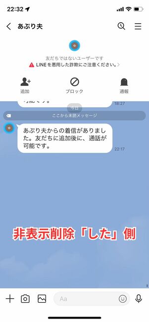 削除時に相手に通知される内容